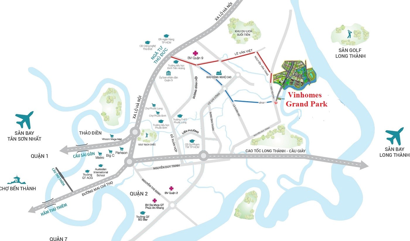 Dự án Vincity Grand Park có vị trí tọa lạc ngay tại mặt tiền đường Nguyễn Xiển, nơi giao nhau với Phước Thiện – Phường Long Thạnh Mỹ – Quận 9 – TP Hồ Chí Minh. Với lợi thế nằm gần tuyến Metro số 1 Bến Thành – Suối Tiên và các tuyến đường huyết mạch của khu vực đã mang lại khả năng liên kết vùng, kết nối khu vực nhanh chóng, dễ dàng tới khu vực trung tâm; lân cận đặc biệt là sân bay Tân sơn Nhất; sân bay Long Thành, KCN cao 1,2; nằm gần làng đại học; Bến Xe Miền Đông mới,. Trong thời gian tới, khi tuyến đường vành đai 3 đi qua sẽ khiến cho dự án Vinhome Grand Park Quận 9 mang dấu ấn xanh, độc đáo trên bản đồ của thành phố hồ Chí Minh.