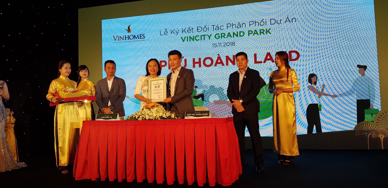 Với kinh nghiệm phân phối độc quyền các dự án bất động sản lớn tại TP.HCM, Phú Hoàng Land tự hào được sự tin tưởng của Tập đoàn Vingroup, ký hợp đồng phân phối, trở thành đối tác chiến lược F1 cho dự án Vincity Grand Park Quận 9. Là một trong những đối tác chiến lược của Vingroup, Phú Hoàng Land luôn không ngừng khẳng định vị thế của mình trên thị trường thông qua kinh nghiệm phân phối độc quyền các dự án lớn, đạt mức doanh số bán hàng và đặc biệt, số lượng và chất lượng đội ngũ nhân viên kinh doanh bất động sản của công ty là những yếu tố được Chủ đầu tư Vingroup quan tâm.